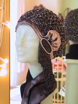 Häkelei gefasst in Seidensamt,
